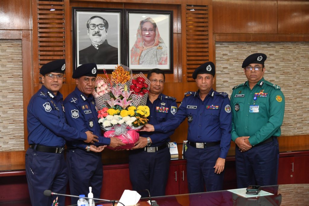 অতিরিক্ত আইজিপি (প্রশাসন) মো. কামরুল আহসান ও স্পেশাল ব্রাঞ্চের অতিরিক্ত আইজিপি মো. মনিরুল ইসলাম গ্রেড-১ পদে পদোন্নতি পাওয়ায় তাঁদেরকে ফুলেল শুভেচ্ছা জানান আইজিপি।