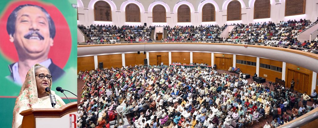 রোববার (১৯ মার্চ) বিকেলে রাজধানীর বঙ্গবন্ধু আন্তর্জাতিক সম্মেলন কেন্দ্রে জাতির পিতা বঙ্গবন্ধু শেখ মুজিবুর রহমানের ১০৩তম জন্মবার্ষিকী উপলক্ষ্যে বাংলাদেশ আওয়ামী লীগ আয়োজিত আলোচনা সভায় সভাপতির ভাষণে প্রধানমন্ত্রী এসব কথা বলেন।