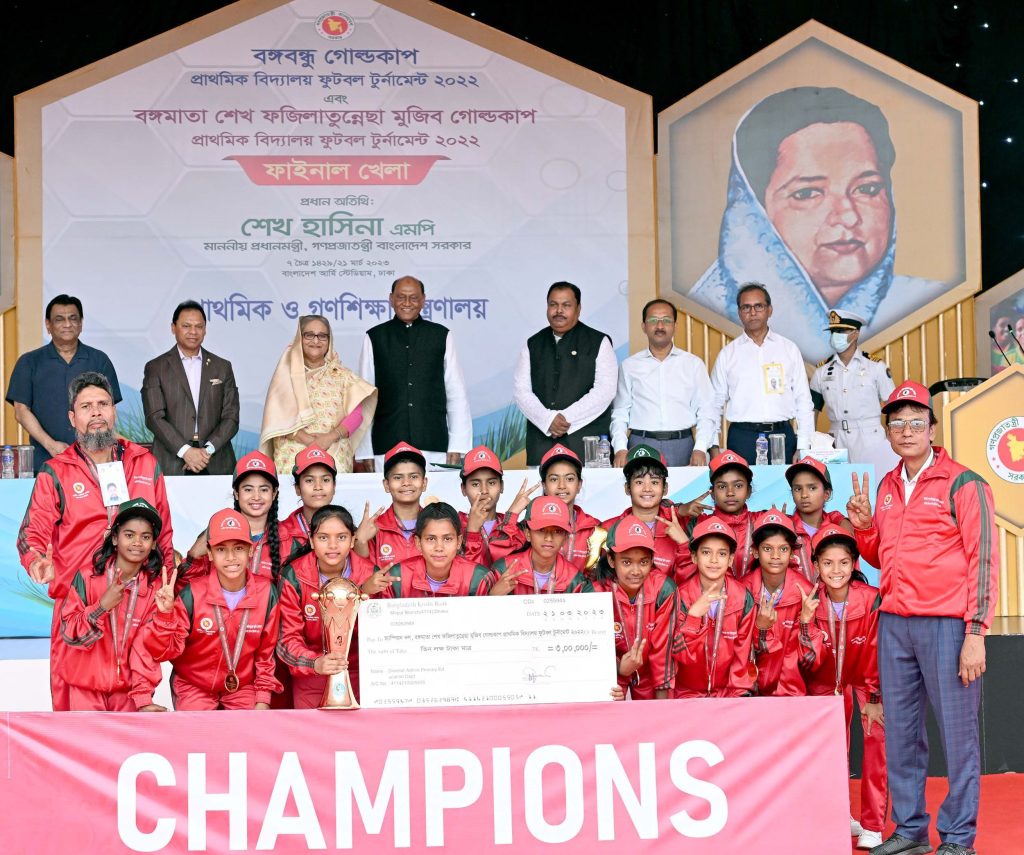 এর আগে প্রধানমন্ত্রী ঢাকা বিভাগের নালমা সরকারি প্রাথমিক বিদ্যালয় ঘাটাইল, টাঙ্গাইল ও চট্টগ্রাম বিভাগের বাঞ্চারামপুর মডেল সরকারি প্রাথমিক বিদ্যালয়ের মধ্যে অনুষ্ঠিত ফাইনাল খেলার দ্বিতীয়ার্ধ উপভোগ করেন। বঙ্গমাতা গোল্ডকাপ-২০২২ এর ফাইনাল ম্যাচে বাঞ্চারামপুর মডেল সরকারি প্রাথমিক বিদ্যালয় নালমা সরকারি প্রাথমিক বিদ্যালয়কে হারিয়ে কাপটি অর্জন করে