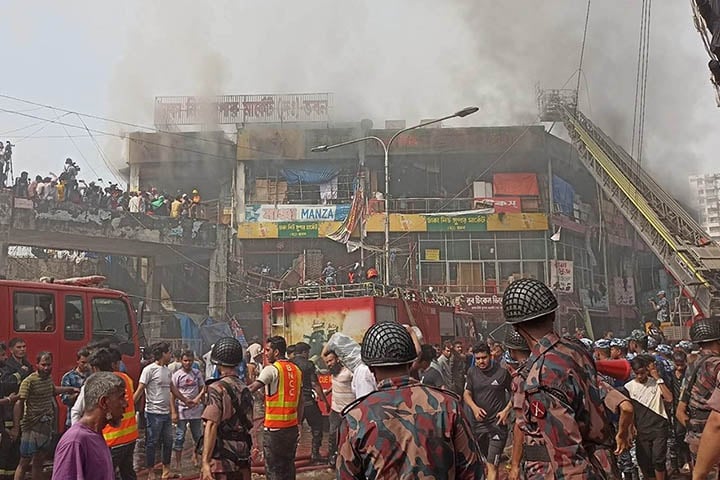 এর আগে, শনিবার (১৫ এপ্রিল) ভোর ৫টা ৪০ মিনিটের দিকে আগুন লাগার ঘটনা ঘটে। আগুন নিয়ন্ত্রণে ফায়ার সার্ভিসের ৩০টি ইউনিটের সঙ্গে সেনা, র‌্যাব, বিজিবি, নৌ ও বিমানবাহিনী যোগ দিয়েছে।