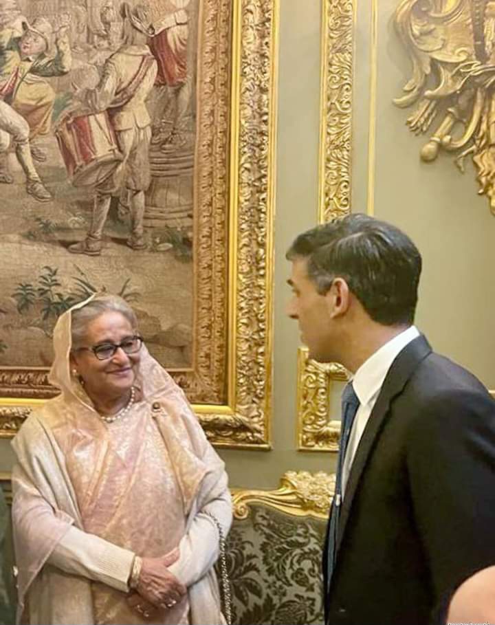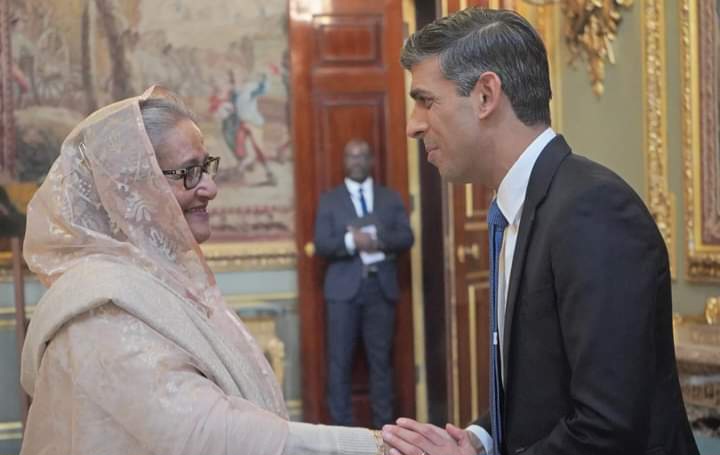 স্থানীয় সময় শুক্রবার (০৫ মে) লন্ডন পল মলে কমনওয়েলথ সেক্রেটারিয়েটের মার্লবোরো হাউসের দ্বিপাক্ষিক বৈঠক কক্ষে বাংলাদেশের প্রধানমন্ত্রী শেখ হাসিনা ও যুক্তরাজ্যের প্রধানমন্ত্রী ঋষি সুনাকের মধ্যে বৈঠক অনুষ্ঠিত হয়। এ বৈঠকের পর যুক্তরাজ্যে বাংলাদেশের হাইকমিশনার সাইদা মুনা তাসনিম জানান, দ্বিপাক্ষিক বৈঠকে ঋষি সুনাক বাংলাদেশের প্রধানমন্ত্রীকে বলেন, আমি আপনাকে অনেক বছর ধরে অনুসরণ করছি। আপনি একজন সফল অর্থনৈতিক নেতা।