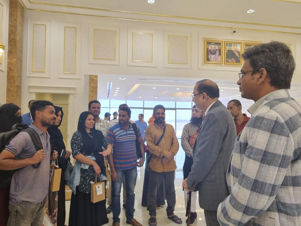 এ সকল বাংলাদেশিদের স্বাগত জানান সৌদি আরবে নিযুক্ত বাংলাদেশের রাষ্ট্রদূত ড. মোহাম্মদ জাবেদ পাটোয়ারী। এ সময় জেদ্দাস্থ বাংলাদেশ কনস্যুলেটের কনসাল জেনারেল মোহাম্মদ নাজমুল হক ও অন্যান্যরা উপস্থিত ছিলেন।