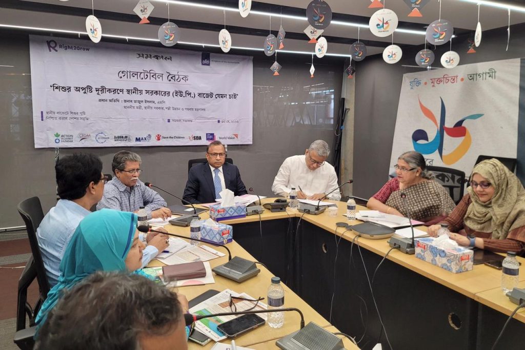 বুধবার (১০ মে) তেজগাঁওতে দৈনিক সমকাল পত্রিকার সভাকক্ষে রাইট টু গ্রো ও কিংডম অফ নেদারল্যান্ডসের সহযোগিতায় “শিশুর অপুষ্টি দূরীকরণে স্থানীয় সরকারের (ইউ.পি.) বাজেট যেমন চাই” শীর্ষক এক গোলটেবিল বৈঠকে তিনি এসব কথা কথা বলেন।