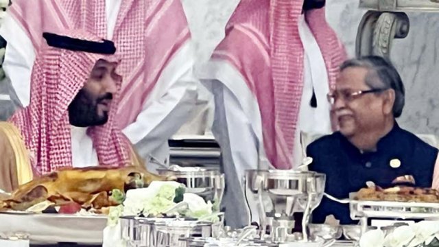 ক্রাউন প্রিন্সের সঙ্গে শুভেচ্ছা বিনিময়কালে রাষ্ট্রপতি সাহাবুদ্দিন বলেন, সৌদি আরবের সঙ্গে বাণিজ্য ও বিনিয়োগসহ বিভিন্ন ক্ষেত্রে দ্বিপাক্ষিক ও বহুপাক্ষিক সম্পর্ক বৃদ্ধিকে সর্বোচ্চ অগ্রাধিকার দেয় বাংলাদেশ।