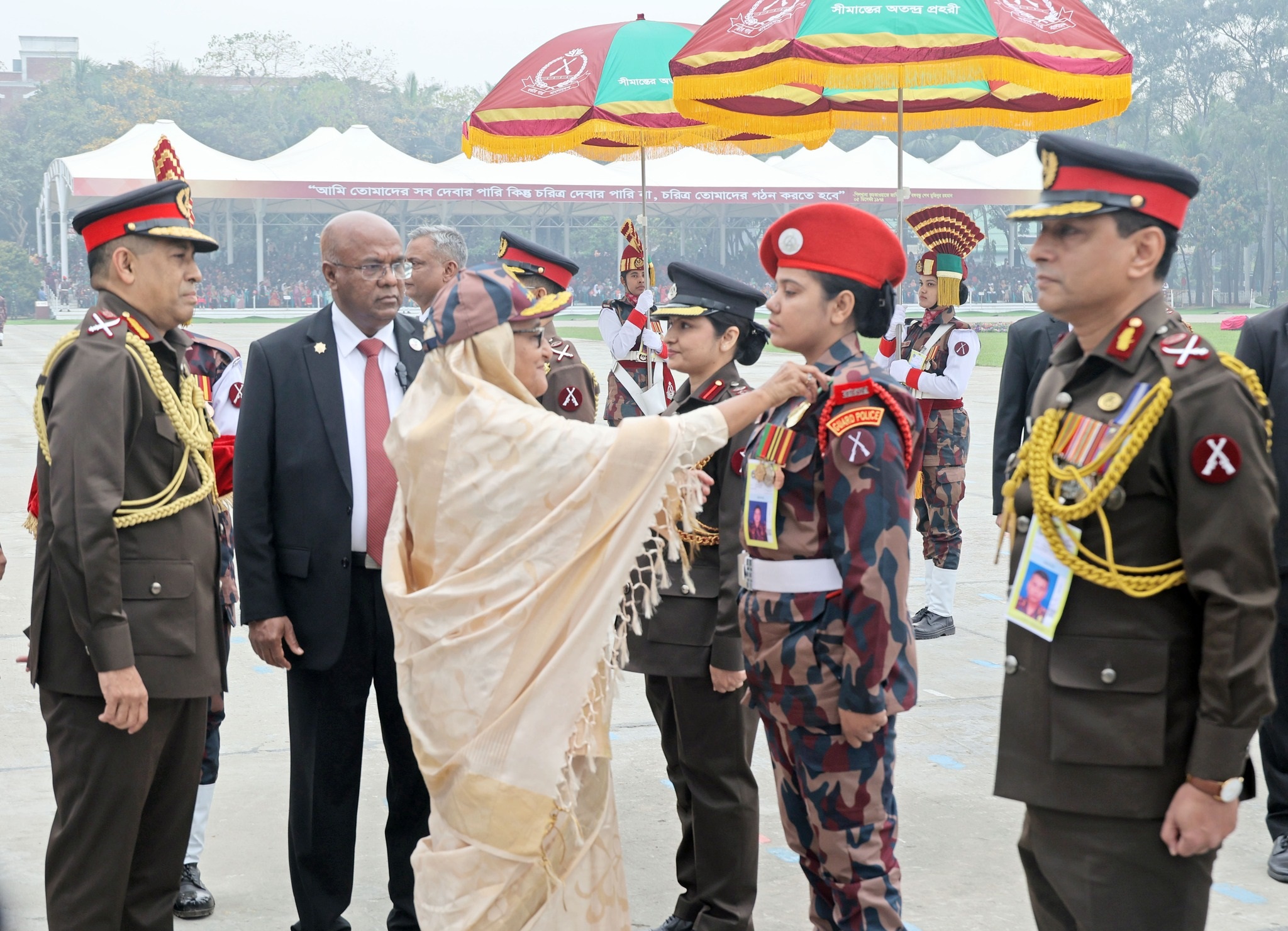 সোমবার (০৪ মার্চ) সকাল সাড়ে ৯টায় বিজিবি সদর দপ্তরের বীরউত্তম আনোয়ার হোসেন প্যারেড গ্রাউন্ডে বর্ডার গার্ড বাংলাদেশ দিবসের আনুষ্ঠানিক কুচকাওয়াজ অনুষ্ঠানে প্রধান অতিথির বক্তব্যে এসব কথা বলেন তিনি। প্রধানমন্ত্রী আনুষ্ঠানিক কুচকাওয়াজ পরিদর্শন ও অভিবাদন গ্রহণ করেন। এছাড়া তিনি বিজিবি দিবসের এ অনুষ্ঠানে বীরত্বপূর্ণ ও কৃতিত্বপূর্ণ কাজের স্বীকৃতিস্বরূপ ৭২ বিজিবি সদস্যকে পদক প্রদান করেন।