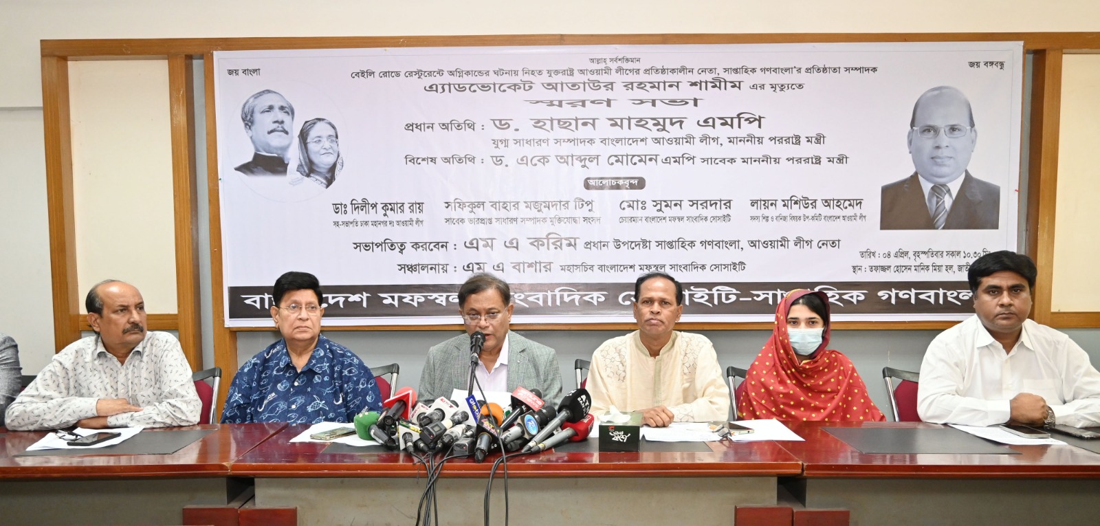 এর আগে স্মরণসভায় পররাষ্ট্রমন্ত্রী সম্প্রতি ঢাকার বেইলী রোডে অগ্নিকাণ্ডের ঘটনায় নিহত যুক্তরাষ্ট্র আওয়ামী লীগের প্রতিষ্ঠাকালীন নেতা সাপ্তাহিক গণবাংলা’র প্রতিষ্ঠাতা সম্পাদক এডভোকেট আতাউর রহমান শামীমকে তার বর্ণাঢ্য কর্মজীবনের কথা শ্রদ্ধাভরে স্মরণ করেন ও প্রয়াতের আত্মার শান্তি কামনা করেন।