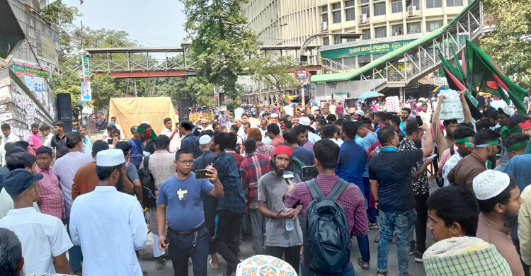 এ সময় ‘ব্যান ব্যান, আওয়ামী লীগ ব্যান’, ‘আবু সাঈদ মুগ্ধ, শেষ হয়নি যুদ্ধ’, ‘একটা একটা লীগ ধর, ধরে দরে জেলে ভর’, ‘আমার সোনার বাংলায়, আওয়ামী লীগের ঠাঁই নেই’, ‘বিচার কর করতে হবে, আওয়ামী লীগের বিচার করতে হবে’, ‘ক্ষমতা না জনতা, জনতা জনতা’ সহ বিভিন্ন স্লোগান দিতে দেখা যায়।