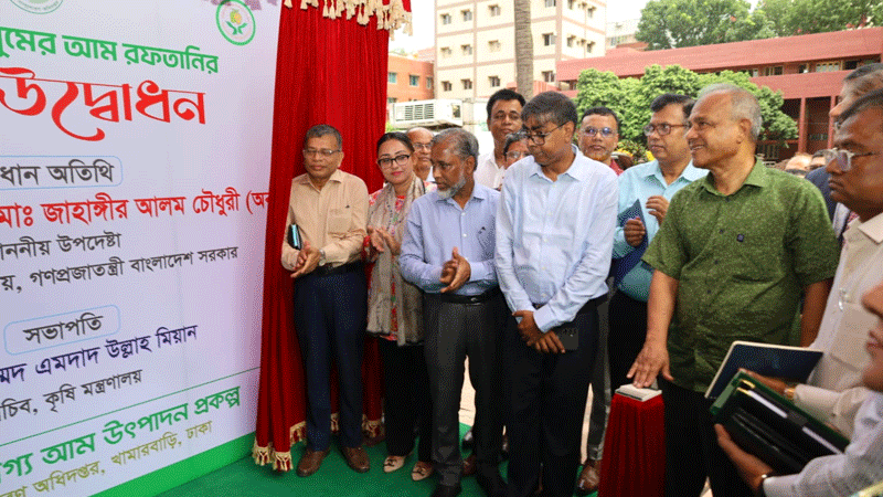 বুধবার সকাল ১০টায় রাজধানীর ফার্মগেটের বাংলাদেশ কৃষি গবেষণা কাউন্সিল মিলনায়তনে আম রপ্তানি উদ্বোধন করেন কৃষি উপদেষ্টা মো. জাহাঙ্গীর আলম চৌধুরী। রপ্তানিযোগ্য আম উৎপাদন প্রকল্পের উদ্যোগে আয়োজিত অনুষ্ঠানে কৃষক, উদ্যোক্তা, রপ্তানিকারক, দূতাবাসের কর্মকর্তাসহ সংশ্লিষ্ট ব্যক্তিরা উপস্থিত ছিলেন। অনুষ্ঠানে সভাপতিত্ব করেন কৃষি সচিব ড. মোহাম্মদ এমদাদ উল্লাহ মিয়ান।
