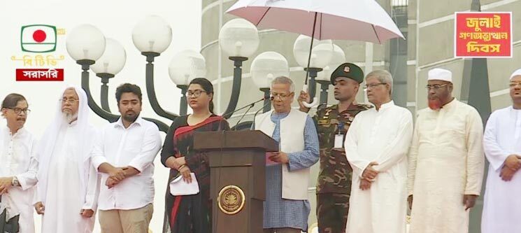 জুলাই ঘোষণাপত্র পাঠ করছেন প্রধান উপদেষ্টা