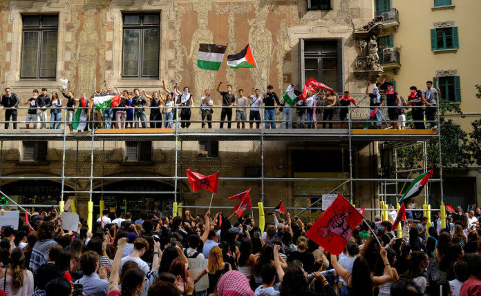 এদিনে স্পেনের বিক্ষোভকারীরা বার্সেলোনার বিভিন্ন দোকান ও রেস্তোরাঁর জানালা ভাঙচুর করেন ও ইসরায়েল বিরোধী স্লোগান লিখে দেন।