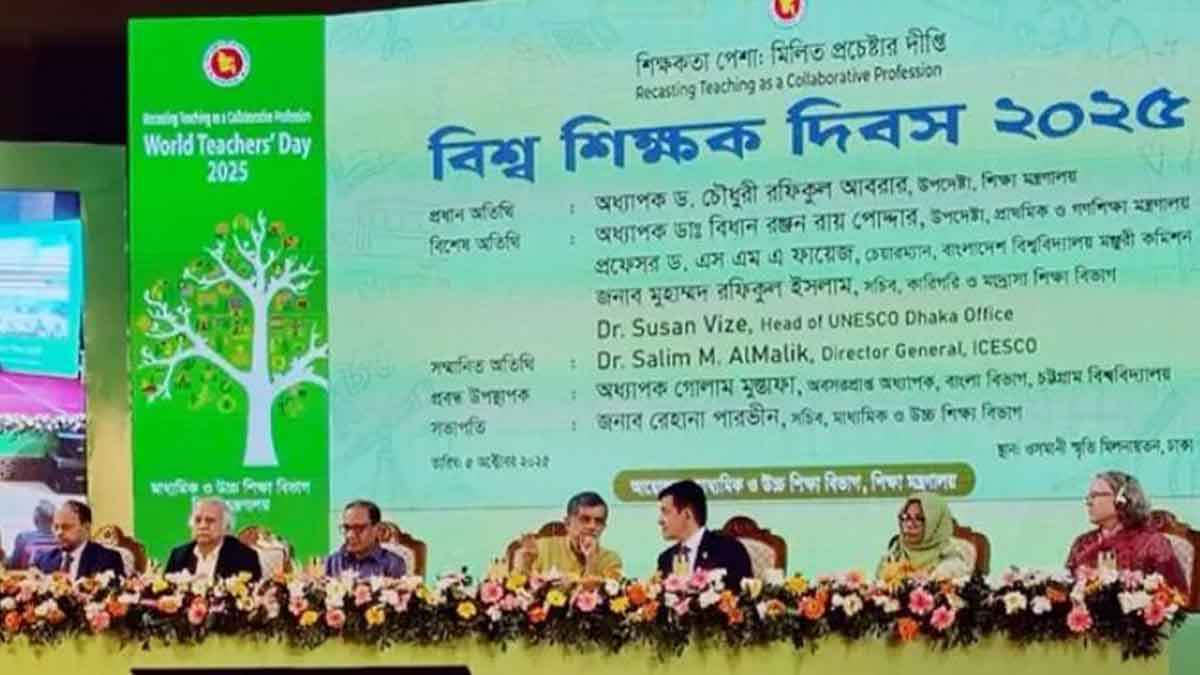 রোববার (৫ অক্টোবর) রাজধানীর ওসমানী স্মৃতি মিলনায়তনে বিশ্ব শিক্ষক দিবস উপলক্ষে আয়োজিত অনুষ্ঠানে প্রধান অতিথির বক্তব্যে তিনি এসব কথা বলেন। ‘শিক্ষকতা পেশা: মিলিত প্রচেষ্টার দীপ্তি’ শীর্ষক এই অনুষ্ঠানের আয়োজন করা হয়।