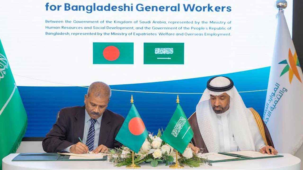 বাংলাদেশ ও সৌদি আরবের মধ্যে সাধারণ কর্মী নিয়োগসংক্রান্ত একটি গুরুত্বপূর্ণ দ্বিপাক্ষিক চুক্তি সোমবার (৬ অক্টোবর) রিয়াদে সই হয়েছে। এই চুক্তিকে দুই দেশের মধ্যে শ্রমবাজার সম্প্রসারণ ও অভিবাসন ব্যবস্থার ইতিহাসে এক নতুন মাইলফলক হিসেবে দেখা হচ্ছে।