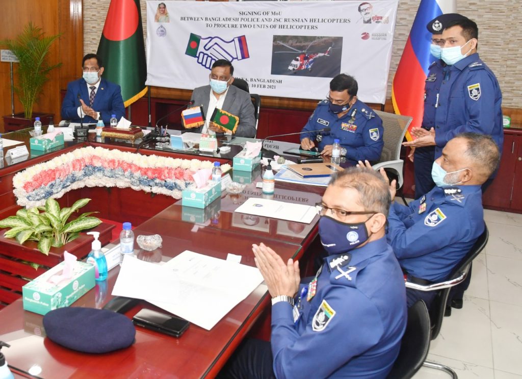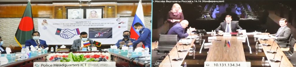 পুলিশ মহাপরিদর্শক (আইজিপি) ড. বেনজীর আহমেদ বিপিএম (বার) এবং রাশিয়ান হেলিকপ্টারর্স এর মহাপরিচালক আন্দ্রে আই. ভোগেনিস্কি ভি‌ডিও কনফা‌রেন্সের মাধ্য‌মে নিজ নিজ প্রতিষ্ঠানের পক্ষে সমঝোতা স্মারকে স্বাক্ষর করেন।