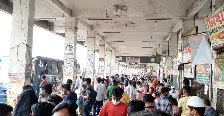 লকডাউনে যাচ্ছে দেশ, বাস টার্মিনালে ঘরমুখো মানুষের চাপ বাড়ছে