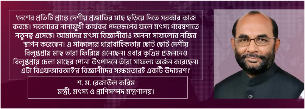 কৃত্রিম প্রজননে বিলুপ্তপ্রায় ঢেলা মাছের পোনা উৎপাদনে বিএফআরআই’র সাফল্য