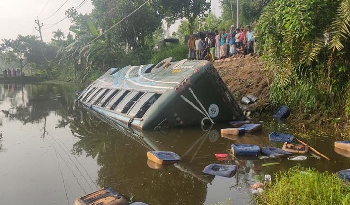 টাঙ্গাইলে বাস খাদে পড়ে নিহত এক, আহত ১৫